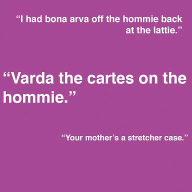 As feely homies, we would zhoosh our riahs, powder our eeks, climb into our bona new drag, don our batts and troll off to some bona bijou bar.