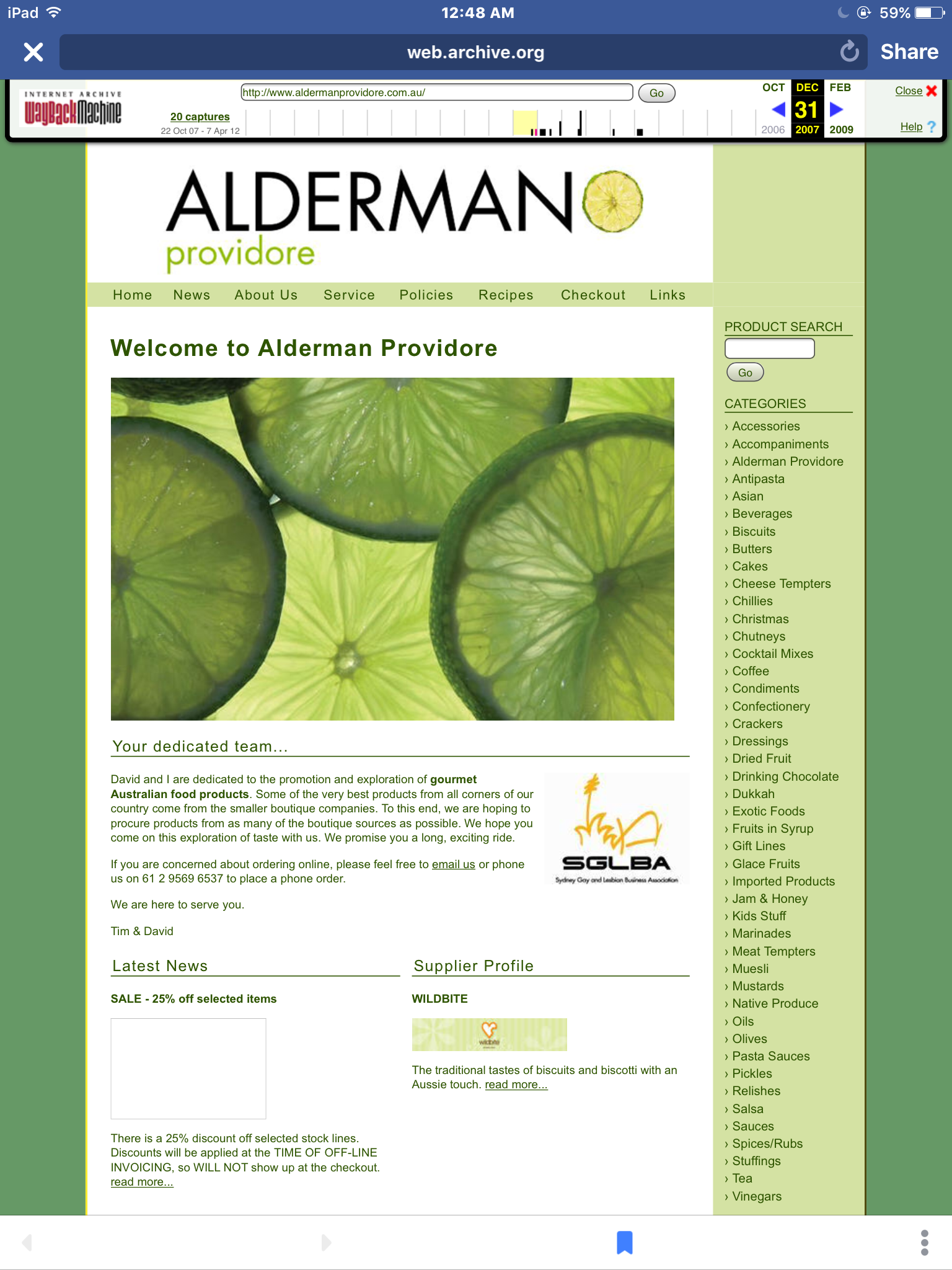 The ghosts of my business still survive in cyber-space. Alderman Providore started in 2006 as the next step along from Alderman Catering – a truly exhausting, though exciting business doing top-end party catering. The Providore was designed as an online business – still a very daring and risky step to take in 2006. It was started with $5000 that I begged, borrowed and stole (not really) and was originally a small store on Ebay, created from Ebay templates.