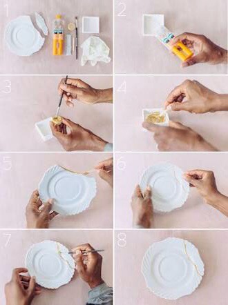 Kintsukuroi (“golden mend”) is the Japanese art of mending broken pottery using lacquer resin laced with gold or silver. As well as a nifty form of repair, kintsukuroi has a deeper philosophical significance. The mended flaws become part of the object’s design, and some people believe the pottery to be even more beautiful having gone through the process of being broken and repaired.