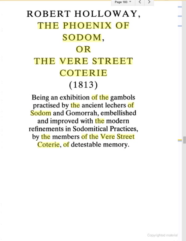 Rictor Norton (Ed.), “The Vere Street Club, 1810”, Homosexuality in Nineteenth-Century England: A Sourcebook, 7 May 2008, updated 7 September 2008 http://rictornorton.co.uk/eighteen/1810vere.htm