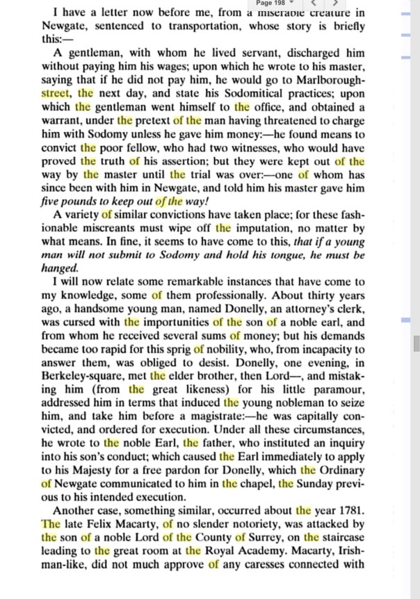 But the informants raise their scaly heads once more here: as they were themselves habitues of the molly circuit, they could provide firsthand eyewitness testimony about the acts of buggery several men had committed with them.