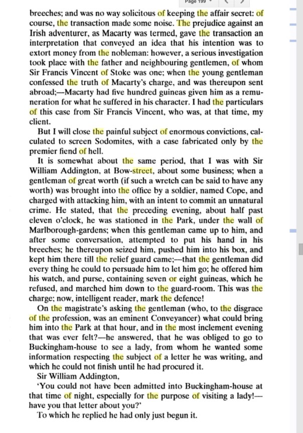 The case of Captain Rigby has everything a gay historian requires: sex, dramatic incident, humour, some degree of gay pride or at least defiance, personal human interest, and wider social relevance. It also holds together as an accessible story that can be easily grasped without the need for historical filters. The gay past here does not seem to be a different country, but a country very recognizeable to us today. Nevertheless, there is some historical context that would be useful to make some things more easily appreciated, which I mention in the following notes.