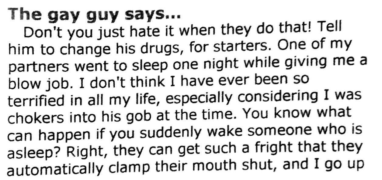 In 2003, after making a witty, sarcastic comment on an article published in an online emagazine called “Sex Tycoon”, I was contacted by them, and asked to be “The Gay Man” commenting on a series of subscriber personal-problem-questions. The panel of “experts” consisted of a “Straight Dude”, “Straight Gal”, ‘The Gay Guy” and “The Lipstick Lesbian”, and each week, under the column title Sex4Cast, we were emailed a “problem” question with a link, which we would then write a reply, offering personal advice on solving the problem. The four panellists had no knowledge, or contact, with each other, so all advice was offered independently. As “The Gay Guy”, I never treated the questions seriously, offering – in my inimitable style – witty (I hoped), sarcastic advice, which, according to feedback from the site owners, was very popular with their subscribers. Sex Tycoon was operated by a group called FocusBlue Media LLC. Unfortunately, as was common in those days on the internet, after 14 columns the owners decided to close the site down, and that was the end of my Agony Aunt career. Sex Tycoon has disappeared into that great cyber-space grave