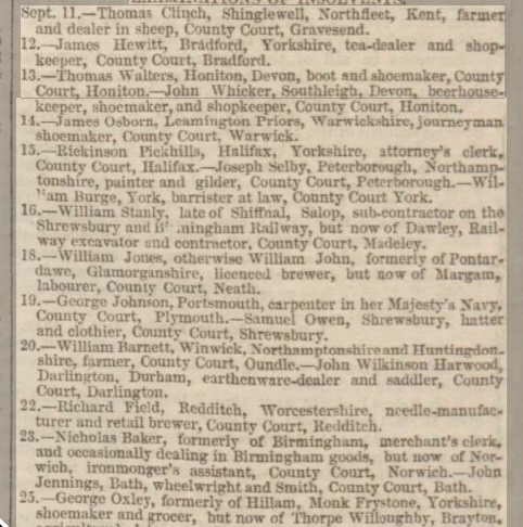 Rickinson’s Insolvency, Birmingham Gazette, September 1840.By the time of the 1841 census, they are listed as living in the district of Fold, and George and Henry are listed with them. Rickinson appears to be given the profession of “agricultural labourer”. Also, note that in this census, the family name is spelt as “Pickles“.