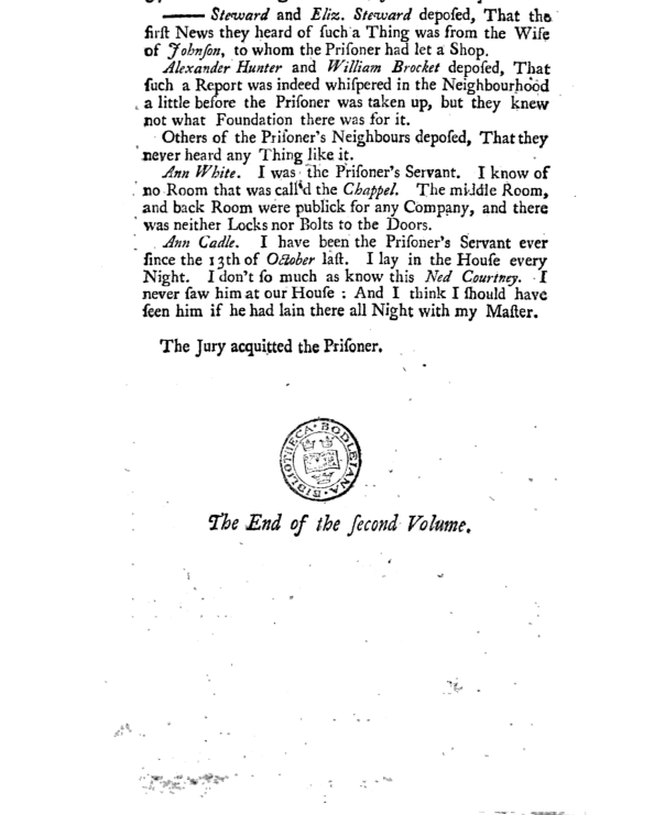ANN CADLE. I have been the Prisoner’s Servant ever since the 13th of October last. I lay in the House every Night. I don’t so much as know this Ned Courtney. I never saw him at our House: And I think I should have seen him if he had lain there all Night with my Master.