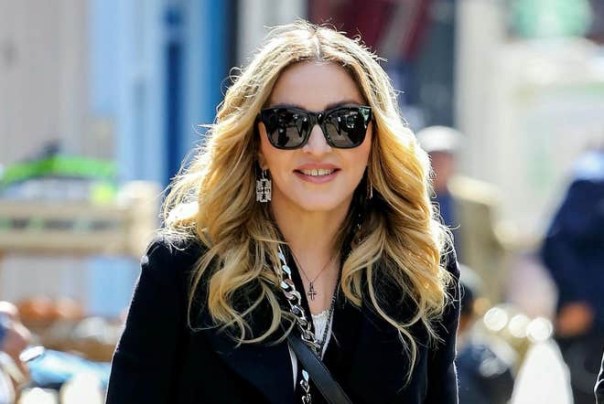 Madonna pictured wearing crucifix-inspired earrings (SWNS)