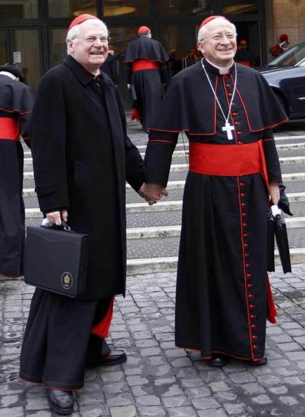 Never to be outdone, Cardinals Angelo Scola, left, and Ennio Antonelli have always been fashion forward at shows. The shading in Antonelli’s tunic, the perfection in Scola’s briefcase accessorizing… It’s almost perfect.