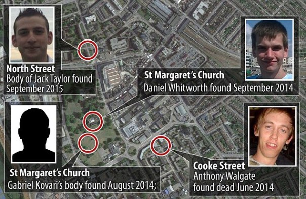 Less than a month later Daniel Whitworth, 21, from Gravesend, Kent, was also found dead in the same graveyard.