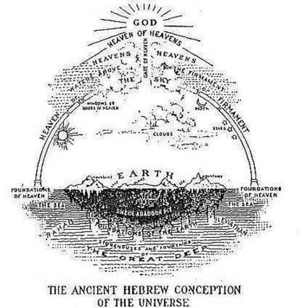 There are many references to the structure of the cosmos in the Old Testament. The Hebrews imagined the universe as a dome structure, with a metal firmament separating the waters of Heaven from the Earthly sphere. In this conception, Earth itself rests on primeval waters, held up by pillars. The idea of the cosmos as water was one that could be found all over the ancient world at the time.