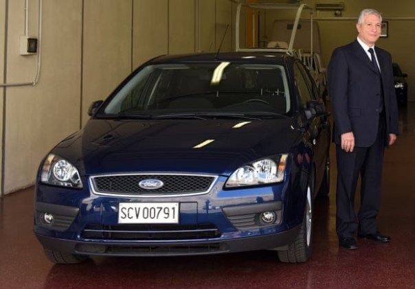 Driver Renzo Cestiè with the Pope’s Ford Focus. Photograph: Christian Sinibaldi