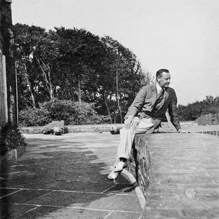 One Sunday, my host, Lord Jowitt, asked my husband if he and I would like to see one of the famous castles of the Cinque Ports. Delightedly we accepted. … We arrived [at Walmer] and were shown into a garden surrounding a grass tennis court. There was the actor Ernest Thesiger, a friend of mine, nude to the waist and covered with pearls.