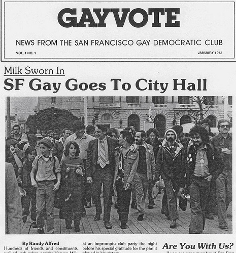 Harvey Milk Democratic Club. Gay Vote, January, 1978 First issue of Gay Vote, the newsletter of the Gay Democratic Club, pg 2 (discusses why the club formed) [See Documents page]
