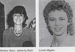 Building on years of support from Alice, Carole Migden was elected in 2004 as the second lesbian ever (following Senator Sheila Kuehl) to the California State Senate. Migden had spent the interim years after she left the State Assembly as the Chair of the Board of Equalization prior to running for Senate.[7]