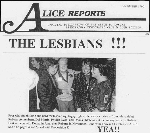 Alice B. Toklas LGBT Democratic Club. Alice Reports, December, 1977 San Francisco Mayor George Moscone makes several public commitments to the gay community [See Documents page]