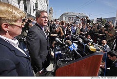 Mark Leno carried the torch of marriage equality through the summer in the legislature with Assembly Bill 849, making California the first legislature in the nation to pass a marriage equality bill without the prompting of a court order. Standing up to many who were fearful in his own party that the timing was inappropriate, Leno pressed ahead and through relentless tenacity passed the Marriage Equality bill out of the California Legislature. Leno and Newsom’s efforts helped educate the public and move the issue forward. Polling in California showed that as AB 849 passed the legislature, the California public moved from being decisively opposed to same sex marriage, to being evenly divided over the issue. Despite Governor Schwarzenneger’s veto of AB 849, and despite the rumblings of discontent over Newsom’s act of courage, Leno and Newsom’s efforts, with the work of Alice, Equality California, and countless activists around the state had moved California opinion significantly in our favor. As history continues to move forward, we can be more and more proud of standing up for what is right at a time when others were afraid.
