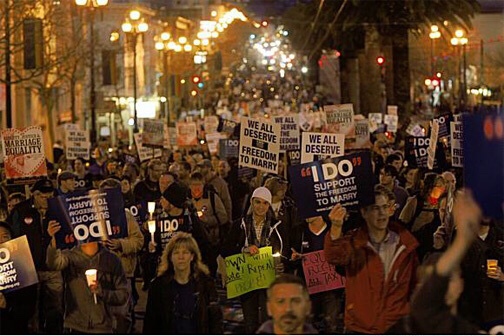 Thousands marching down Market Street, San Francisco in support of Marriage Equality