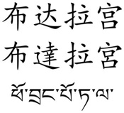 Potala Palace in simplified Chinese (top), traditional Chinese (middle) and Tibetan (bottom).