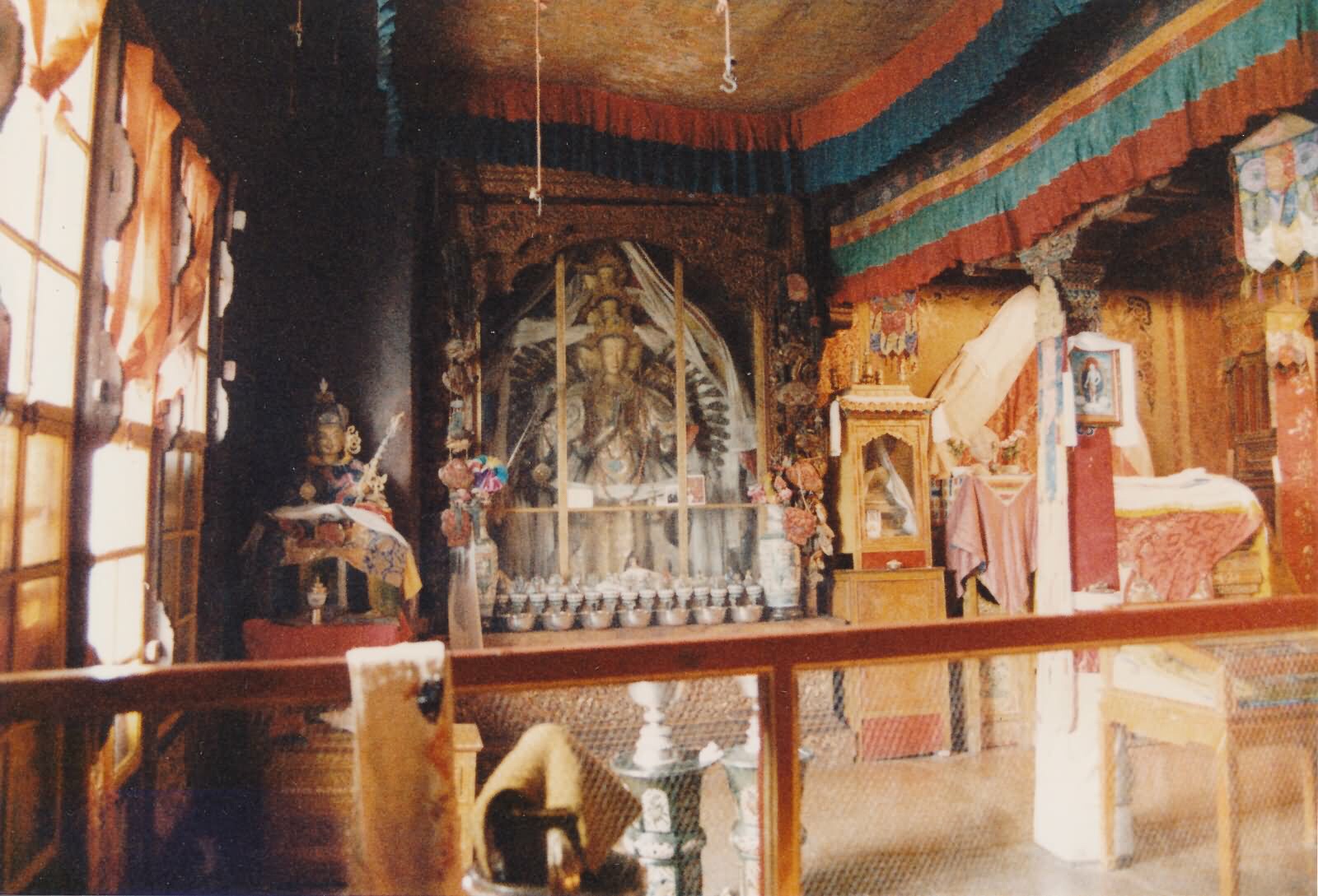 According to the Dalai Lama, among the many images in the temple was an image of Chenrizi, made of clay in the temple, within which the small wooden statue of the Buddha brought from Nepal was hidden. The image was in the temple for 1300 years, and when Songtsen Gampo died his soul was believed to have entered the small wooden statue. During the Cultural Revolution, the clay image was smashed and the smaller Buddha was given by a Tibetan to the Dalai Lama.