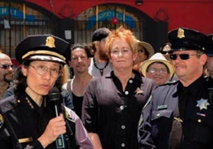 A major concern of the club in the early years was police harassment and substandard conditions in the San Francisco County jail. Gay men and lesbians dealt with police harassment issues with raids on bars and mistreatment by officers of people in the community. The jails were also a highly unsafe environment for gay detainees and the club made it a priority to change conditions in the jails. Jim Foster wrote Mayor Alioto a letter on behalf of the club criticizing him for not doing enough to address the problem of poor jail facilities.[22] In this time, Alice began a long relationship with Sheriff Michael Hennessey who became a friend of the club, often performing as a disc jockey at the clubs annual holiday party. Hennessey worked with the community to institute changes in holding conditions for gay inmates.[23]