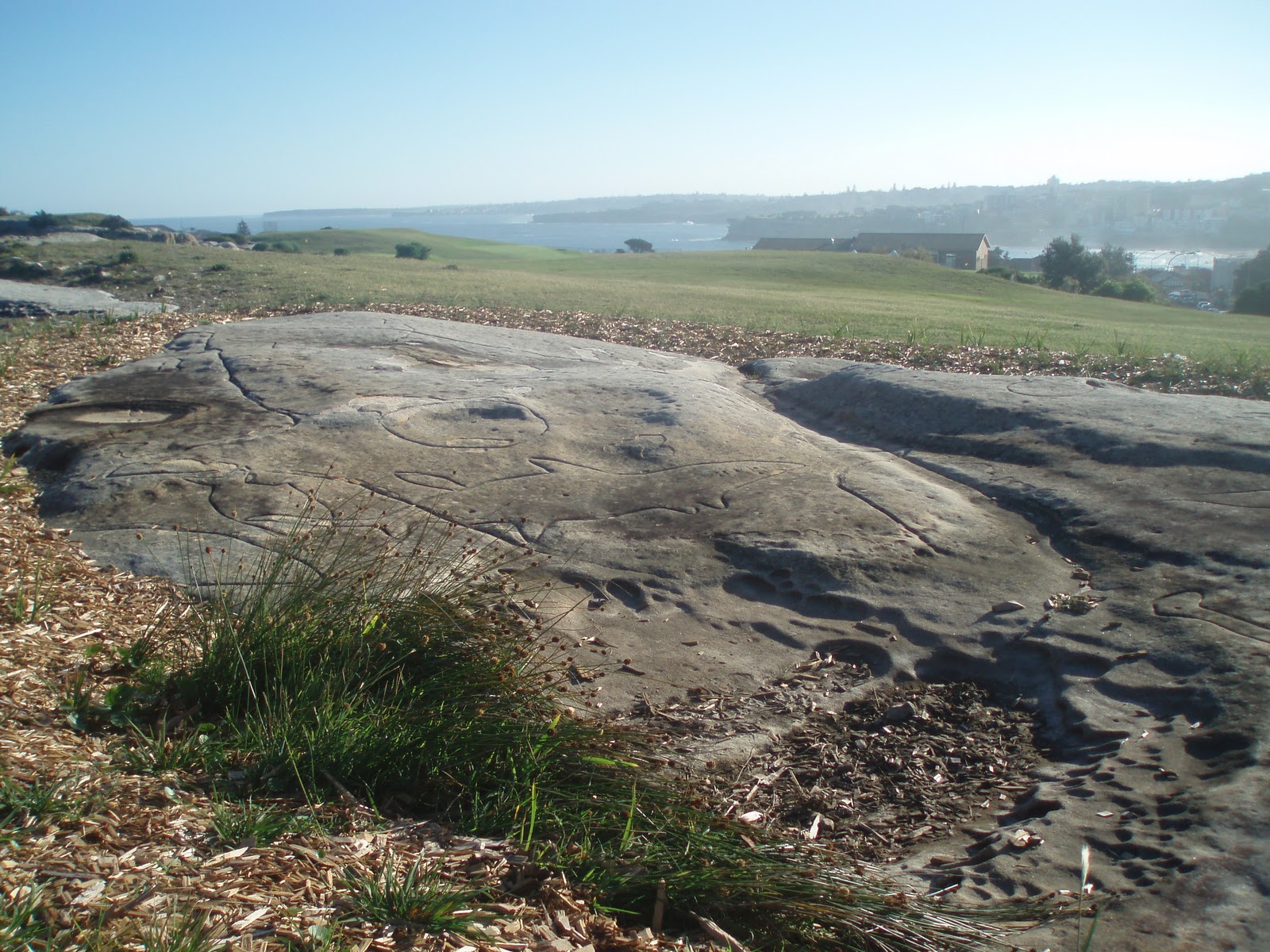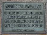 Situated on the southern or sea side of Bondi Golf Course, adjacent to a sewerage treatment plant, there stands a substantial panel of Aboriginal rock carvings depicting various fish species. They are carved into the flat sea-cliff at a fishing rock known to the Indigenous people as Murriverie or Marevera. They were formed by pecking at the rock surface with pointed stones or shells, and extended over 60 metres southwards.