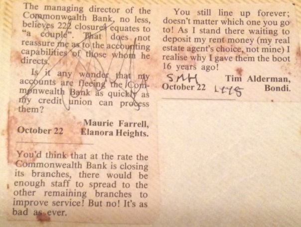 More eye problems followed, this time involving my blind eye. Back to the regular rounds at the Sydney Eye Hospital, and an injection of Avastin (a cancer drug that reduces blood flow) into the blind eye to stop it creating new blood supplies to an eye that couldn’t see. By this time, the interior of the bad eye was collapsing, and it took on an unnatural colour. Before this I hadn’t looked blind. Now I did! Scary how anyone you talk to can pick an anomaly – and stare at it while talking.