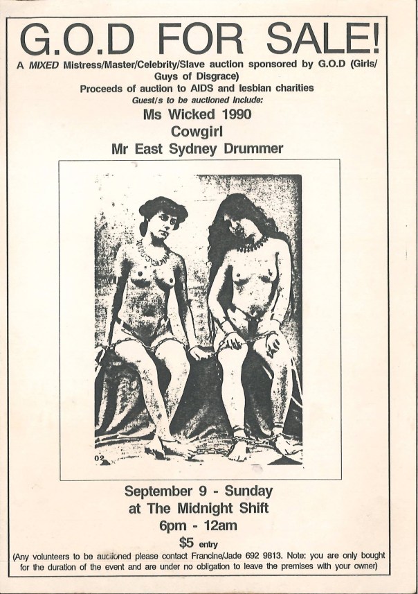 G.O.D. for sale, The Midnight Shift, 9 September 1990, Papers of Fabian LoSchiavo, Australian Lesbian and Gay Archives (ALGA)